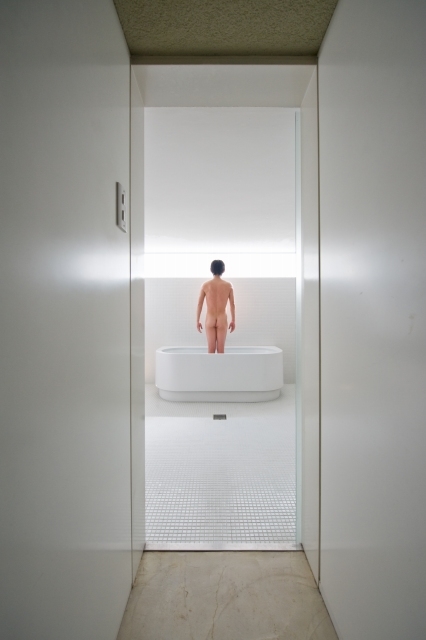 場所:橋本邸(大阪府茨木市) 撮影日時:2012年3月6日(日)AM9:00 撮影:多田ユウコ モデル:温泉ソムリエぐっち 橋本健二 加藤博久 ■寸評 大阪府茨木市にある「橋本健二建築設計事務所」主宰の橋本健二さんの自邸。 RC造のめちゃかっこいい&お洒落&ミニマリズム的なおうちです。 その1階にあるお風呂で撮影。 お風呂はさらにミニマリズムを追求したような空間。 そこで、私と橋本さんとのコラボレーションで撮影。 流石に風呂で生演奏・・・人生初でした。 ※今回は青い濁り湯になる入浴剤を使用